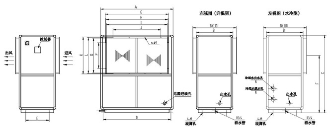 | 升温/水冷型管道防爆除湿空调器外形尺寸 |