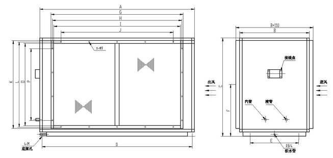 | 管道型防爆除湿空调器风机箱外形尺寸 |