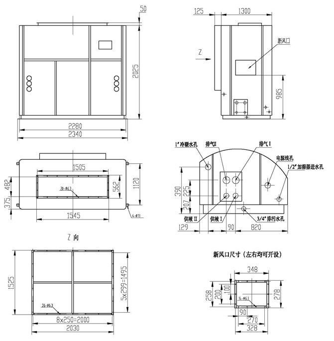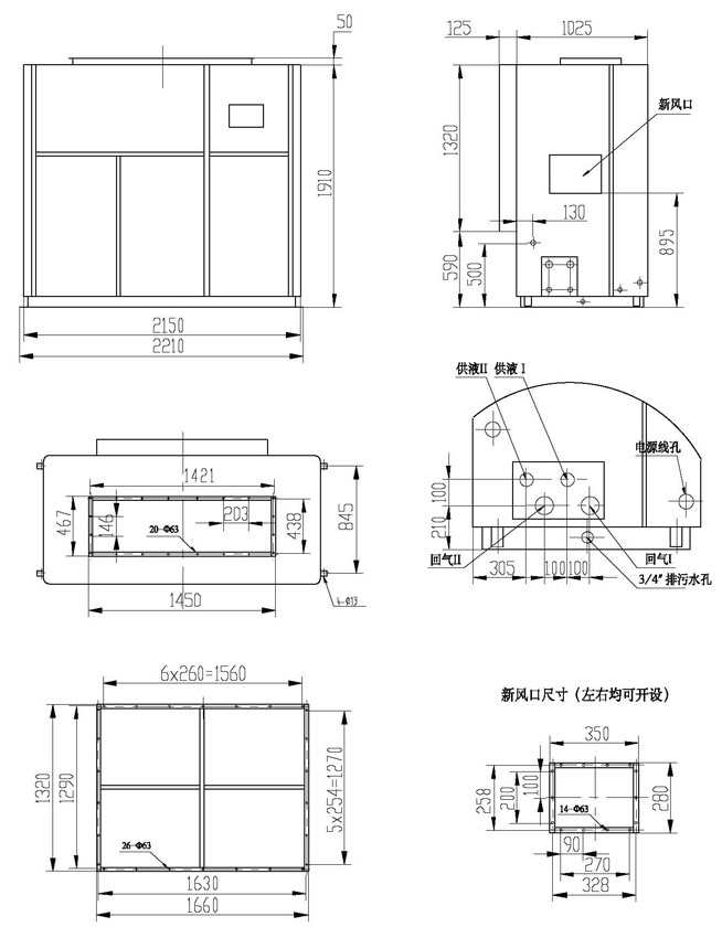 4、单冷型使用环境为+16℃-+43℃,热泵带电辅热型为-10℃-+43℃,电热型为-45℃-+55℃。 |
