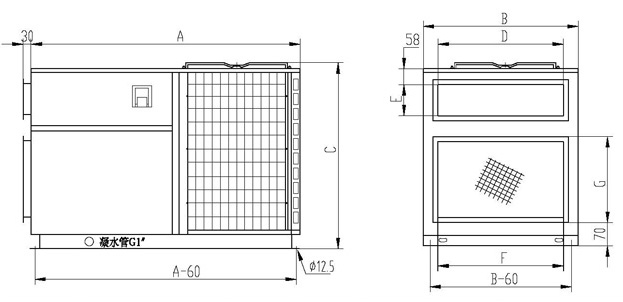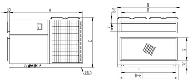| BKG(R、D)-□系列防爆整装管道式空调器外形尺寸 |