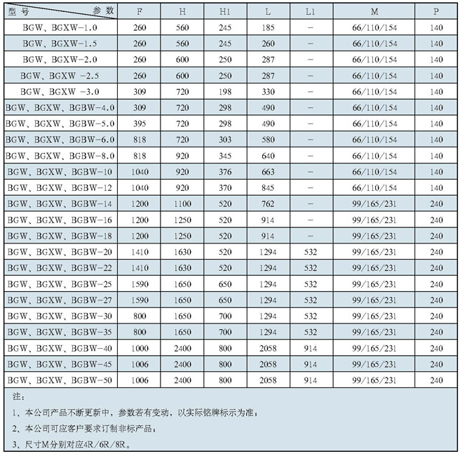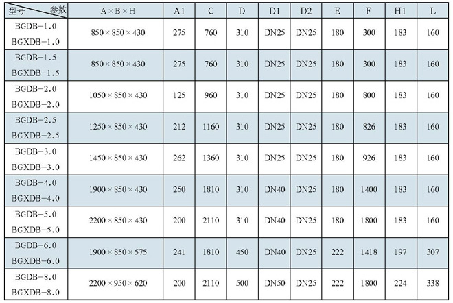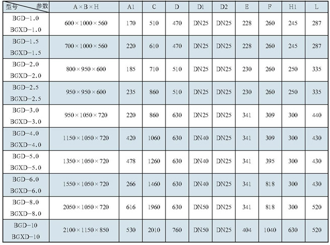 BG系列卧式机组(含BGW、BGXW、BGBW)外形尺寸(续)