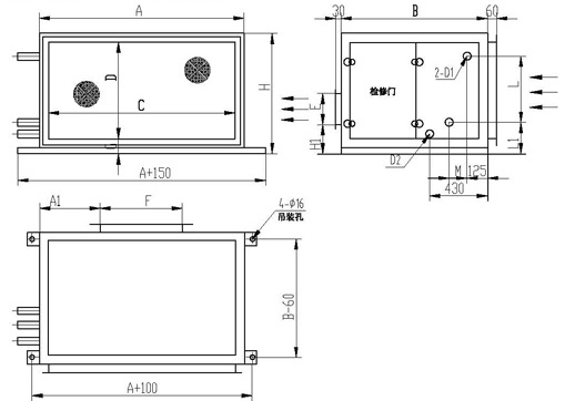 BGD系列吊顶式机组(含BGD、BGXD)外形尺寸