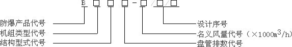 BGBLX-1.5/Z:名义风量为1500 m3/h、立式、左进水、6排管防爆变风量机组。 |