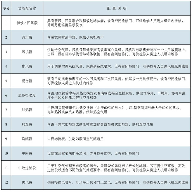 ● 独特组合设计,混合段、过滤段、表冷段、加热段、加湿段、消声段、风机段等功能段独立制造,再依据不同的使用要求加以组合,从一般性的舒适性空调用途到要求严格的医院手术室及集成电路无尘室等洁净工艺性空调均可满足要求。